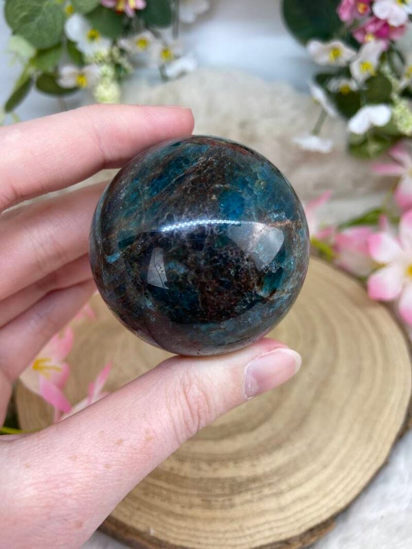 Blauem Apatit wird nachgesagt Manifestationen und die Kommunikation zu unterstützen, sowie die Intuition zu stärken.