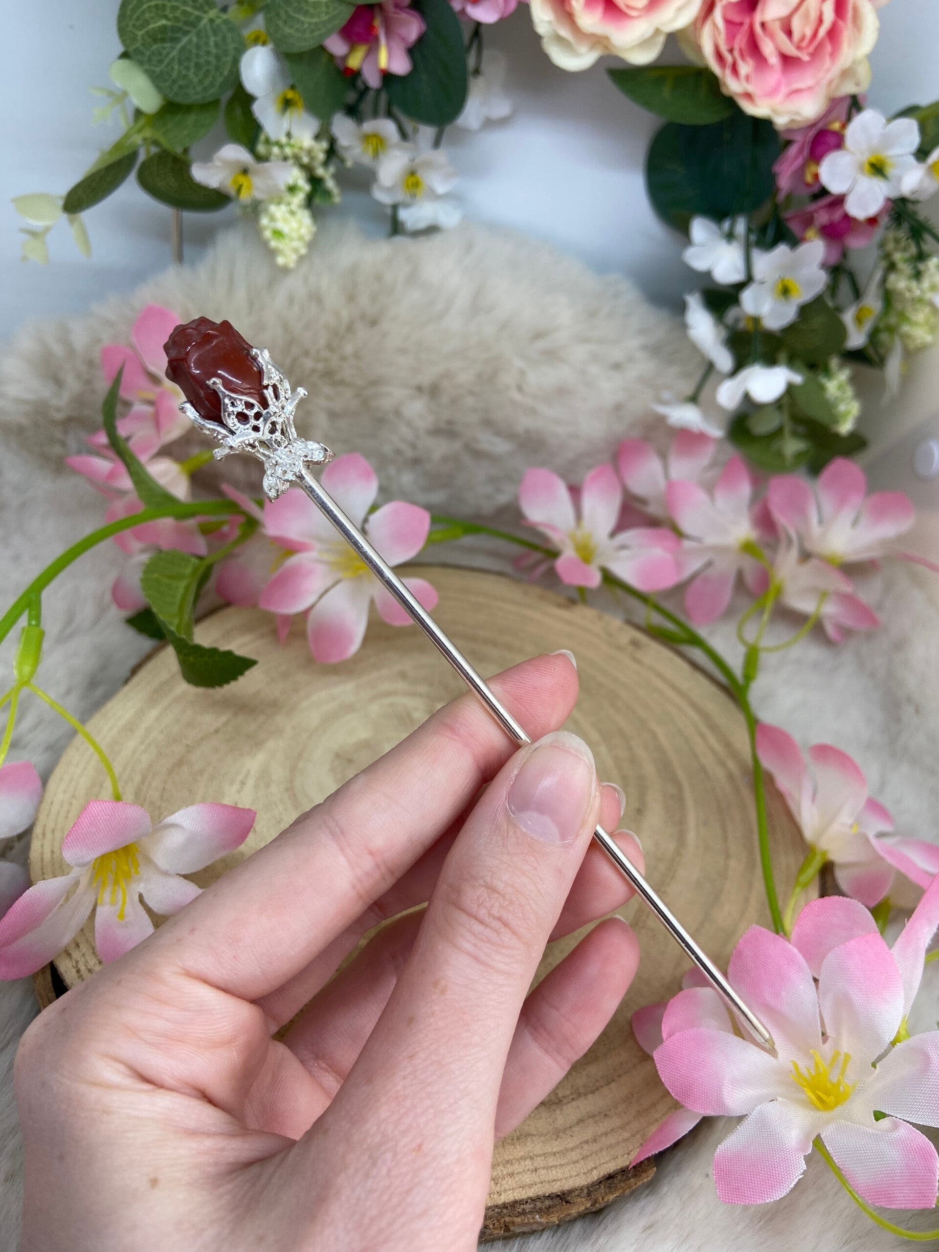 Roter Jaspis soll dabei helfen die Verbindung zur Erde zu stärken und steht für das Wurzelchakra. Außerdem stärkt er das Selbstvetrauen und gibt Mut.