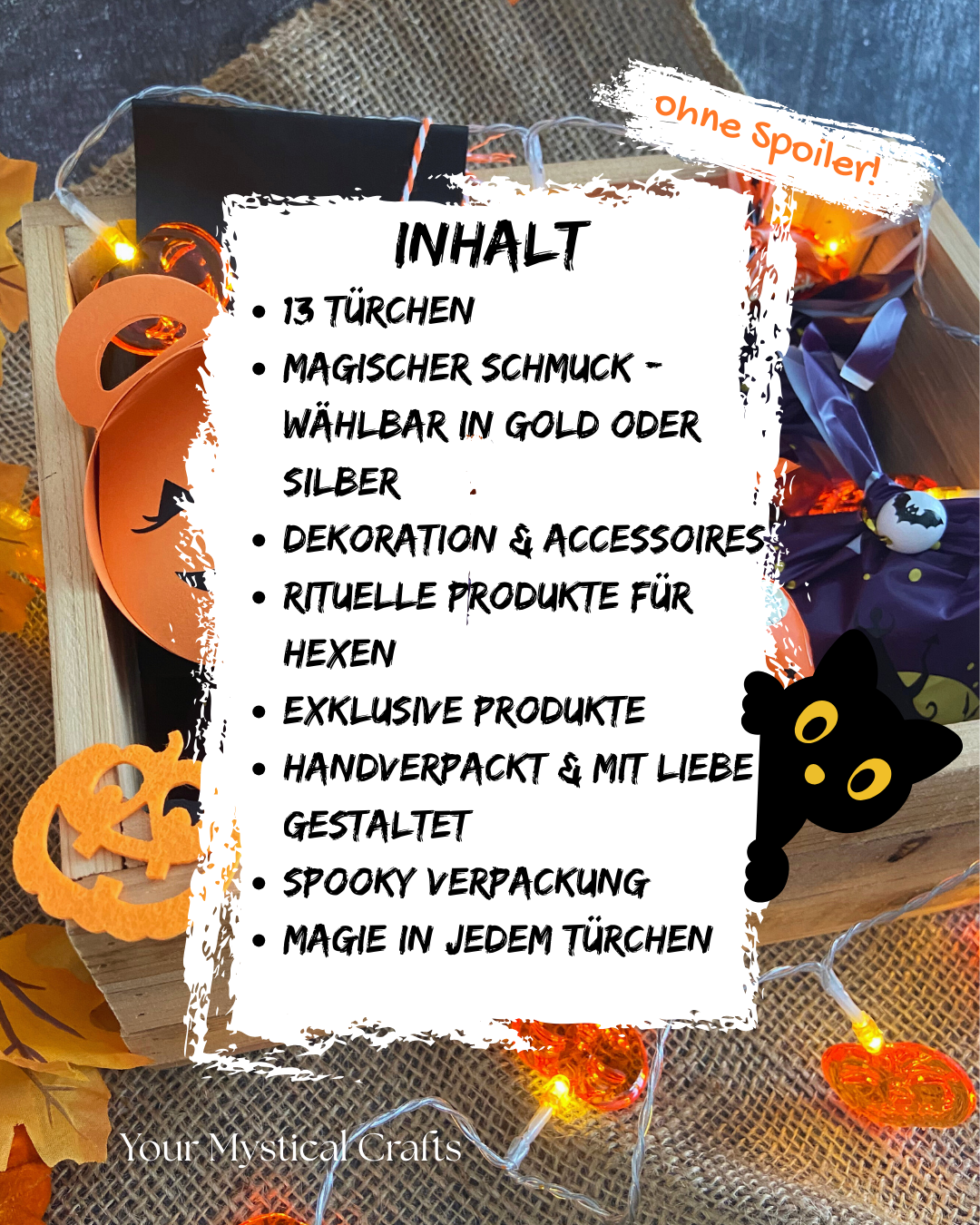 Nein, nur das Design ist von typischen Halloween Symbolen inspiriert. Der Inhalt ist witchy und spirituell. Ähnlich wie meine ehemalige Witch Box, wenn du diese noch kennst.