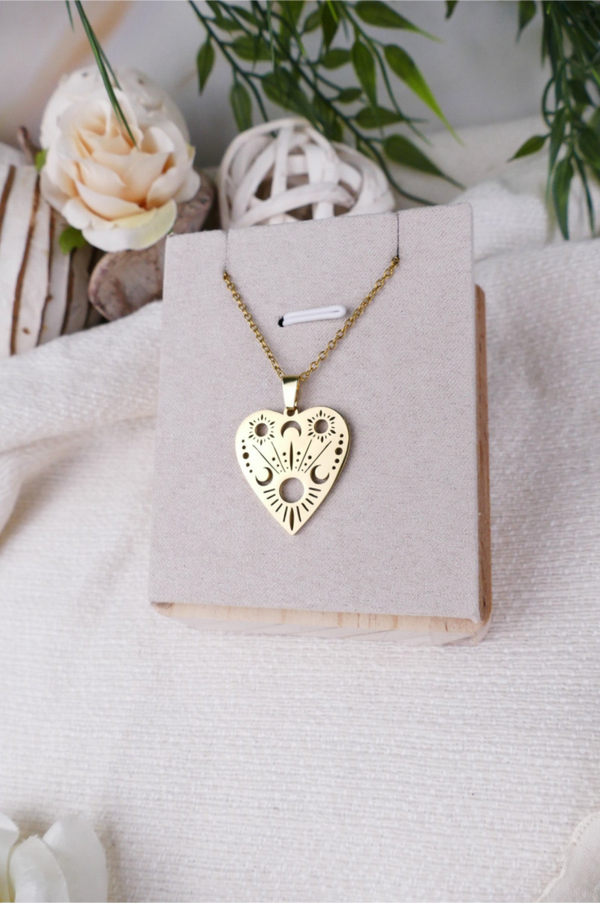 Diese filigrane Edelstahlkette hat einen Anhänger in Form einer Ouija Planchette.