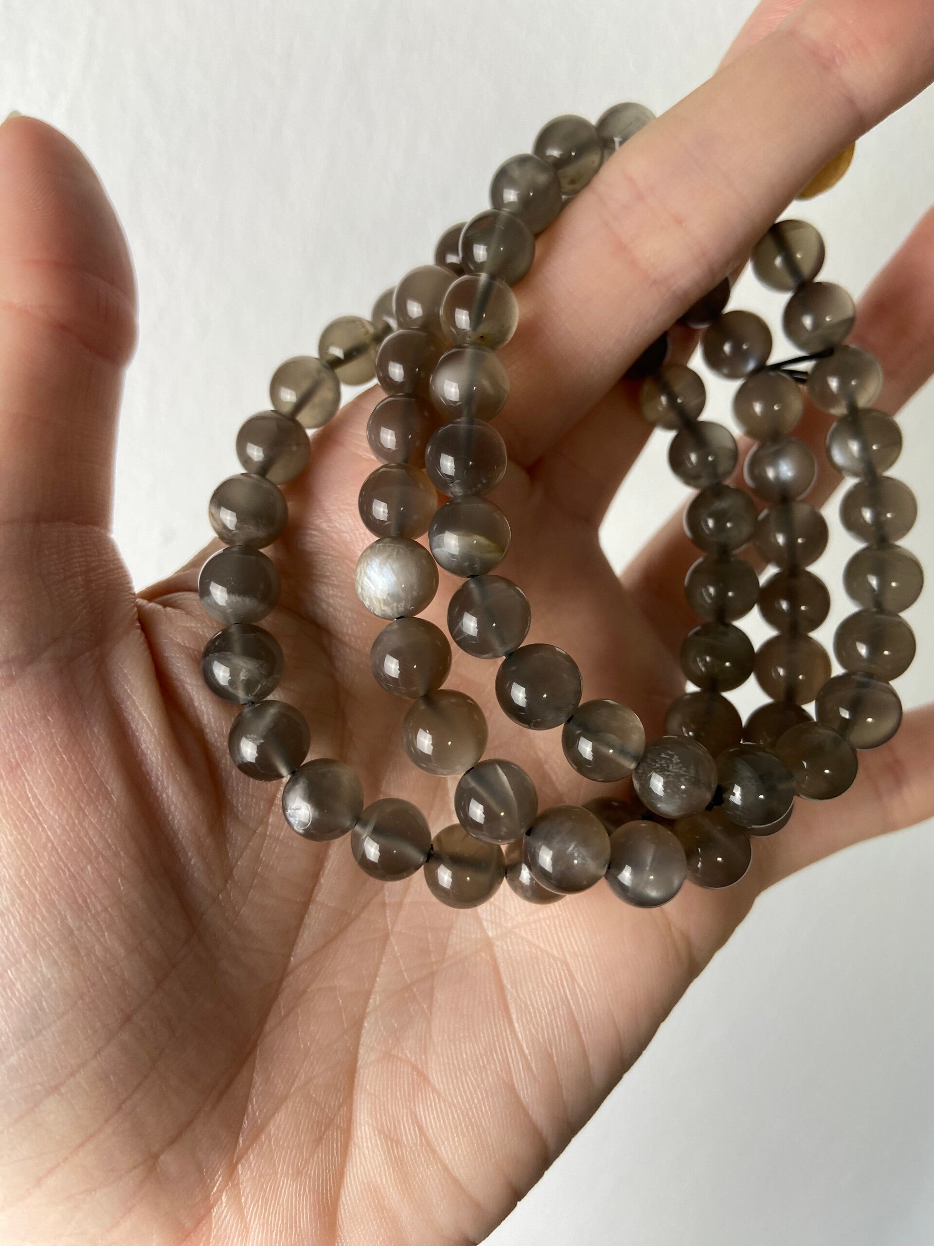 Stretch Armband mit grauem Mondstein mit weißem Flash