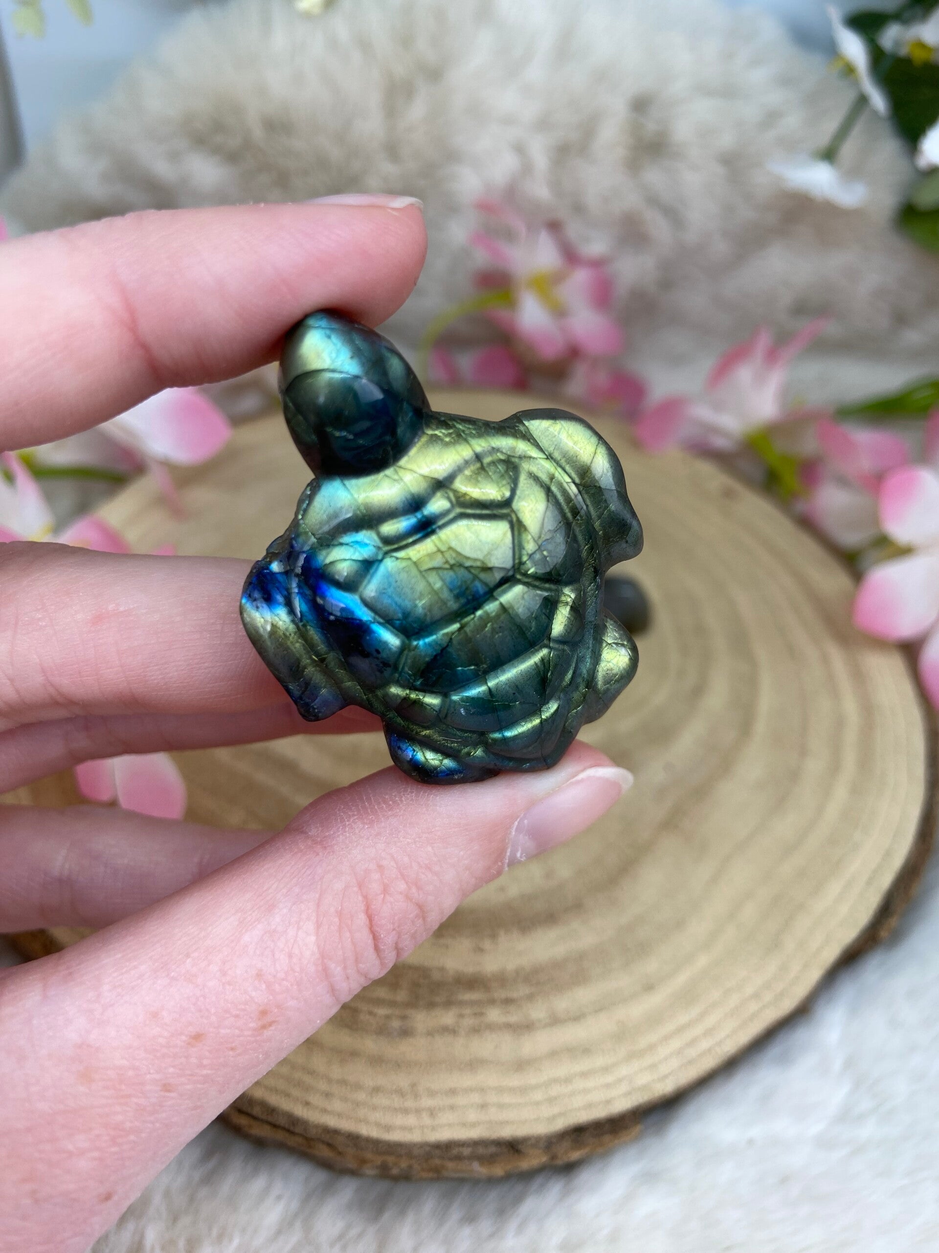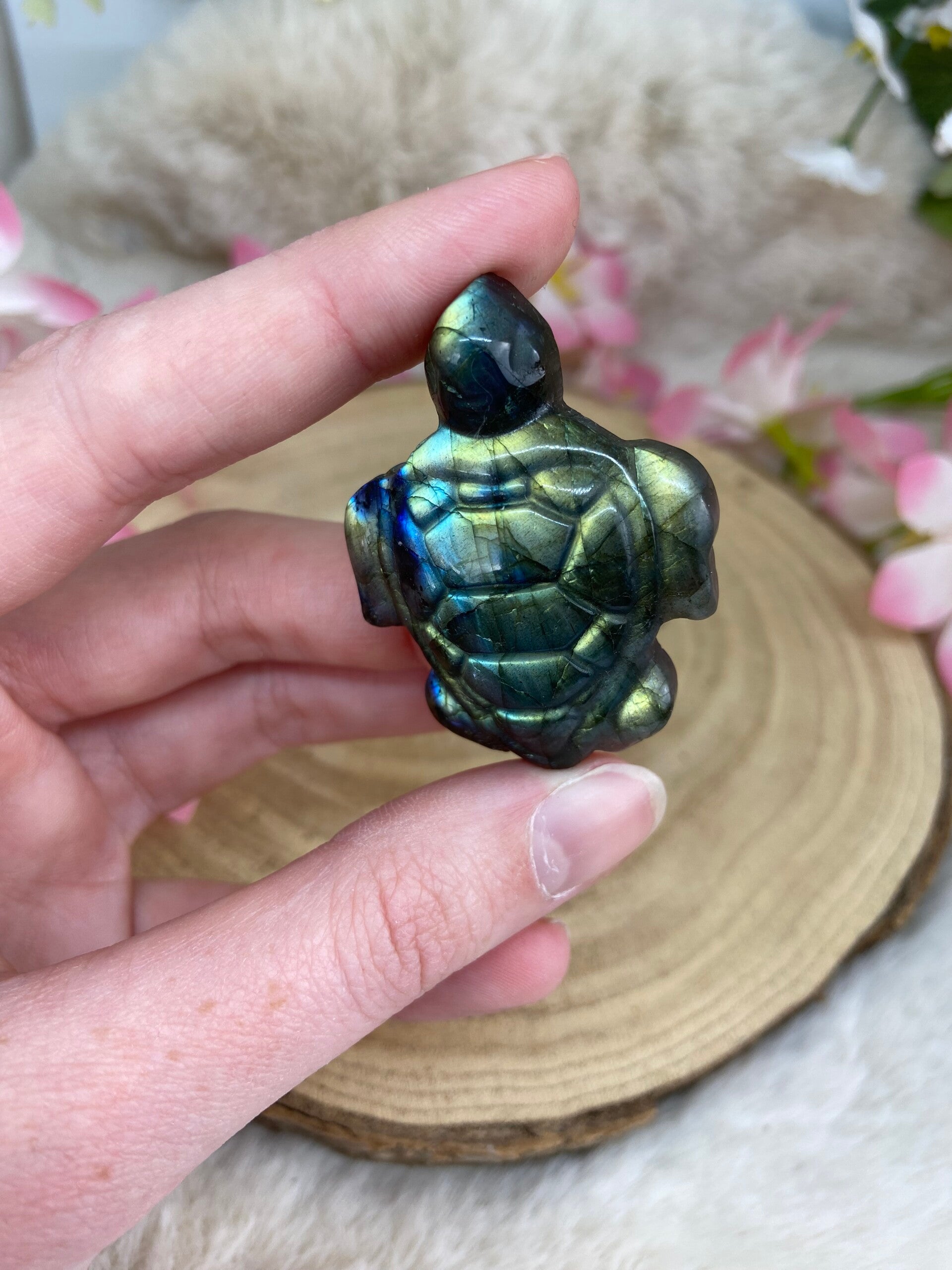 Meeresschildkröte aus Labradorit mit blau/gelb/grünem Flash.