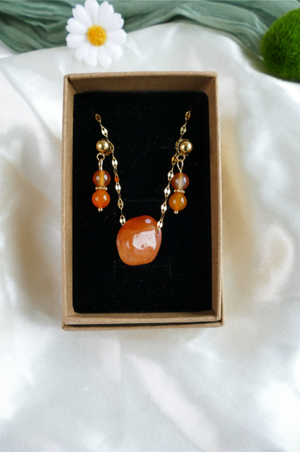 - Gebohrtem Augen-Karneol mit vergoldeter Edelstahlkette