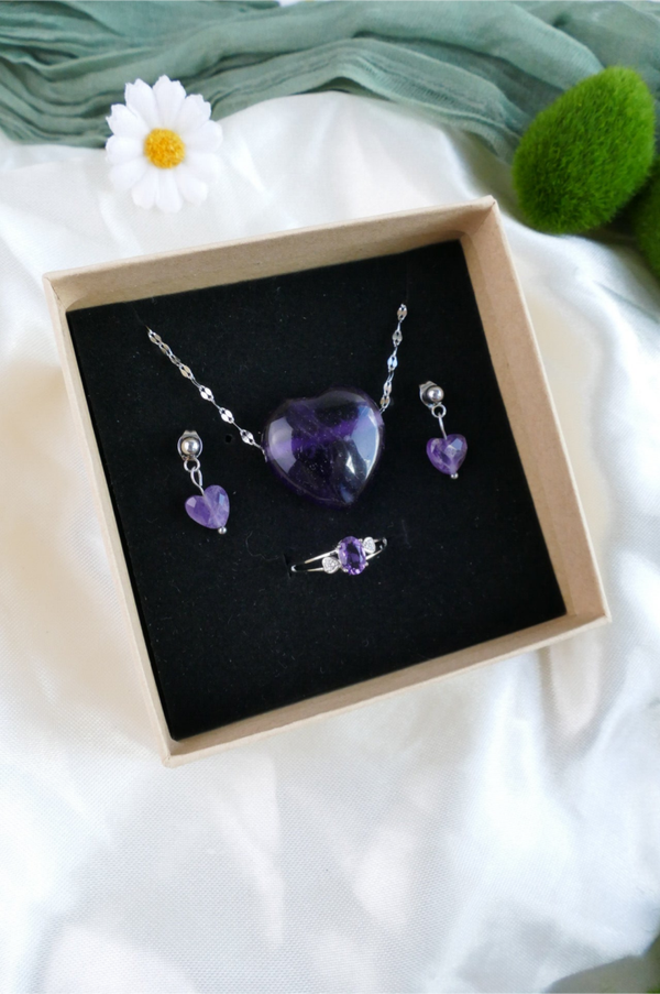 - Gebohrtem Amethyst Herzen mit Edelstahlkette