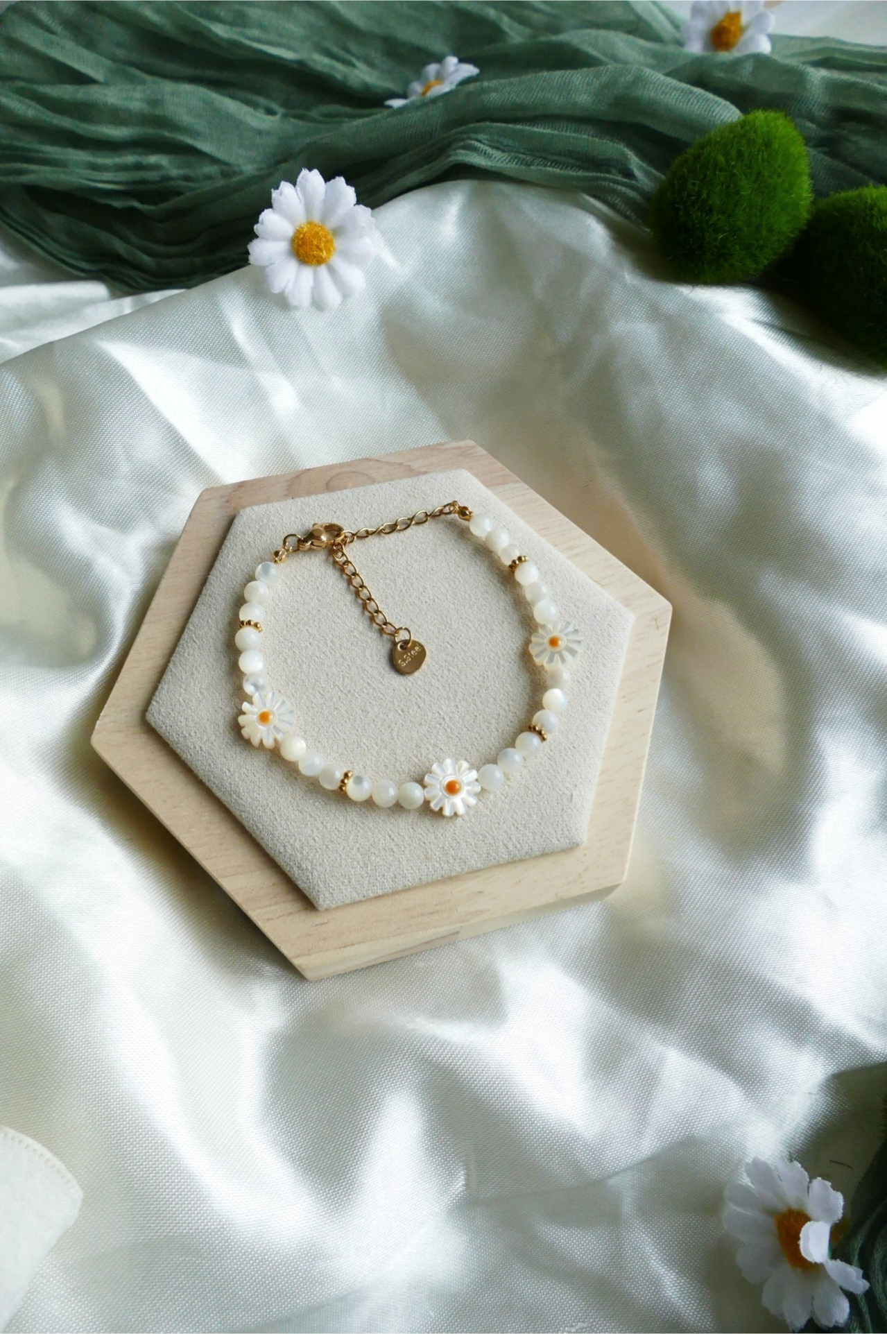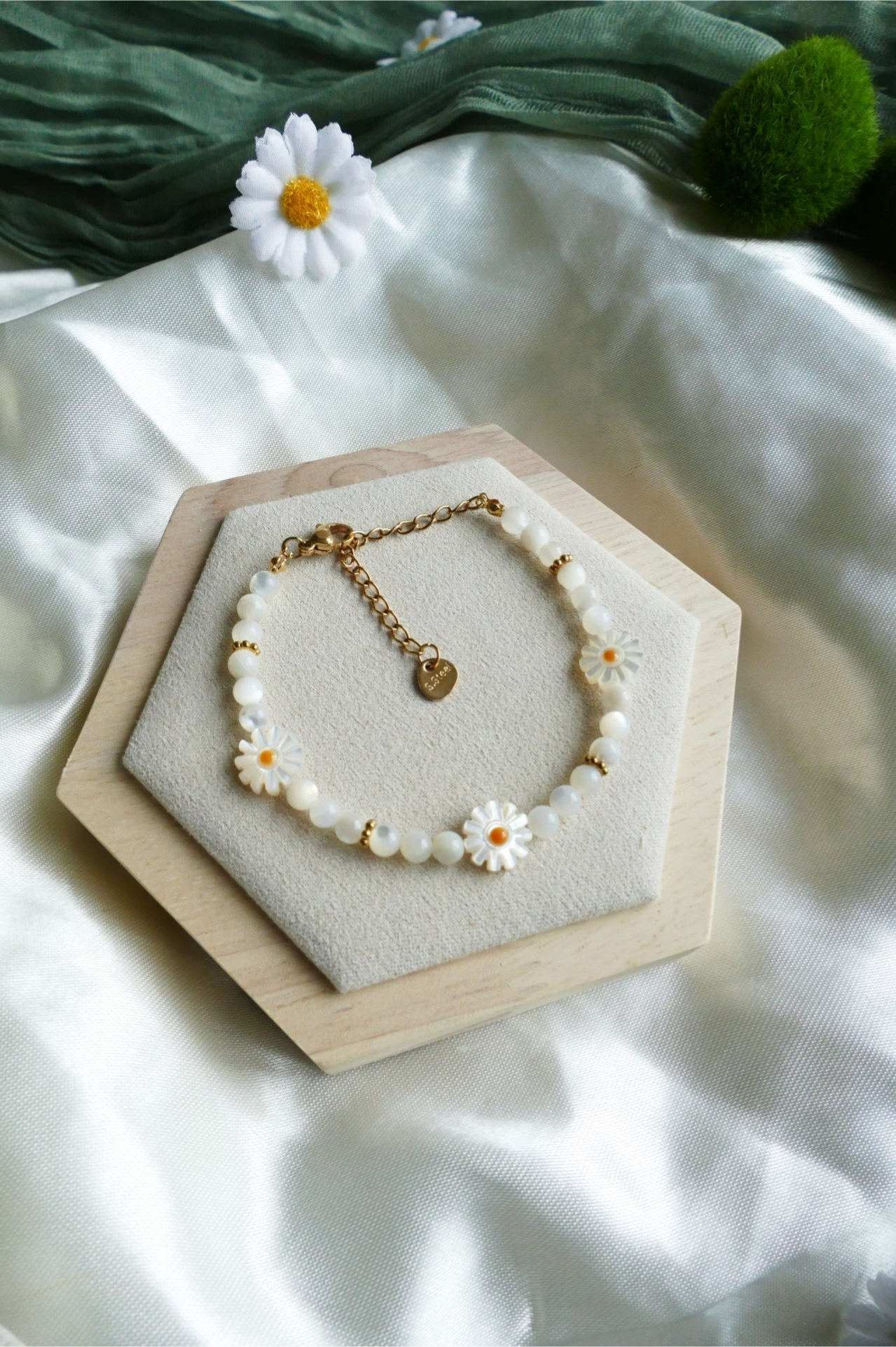 Süßwasserperlen Gänseblümchen Armband