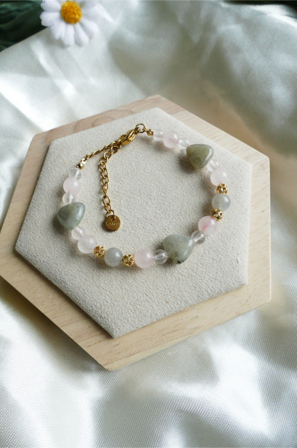 Labradorit x Rosenquarz Herz Armband