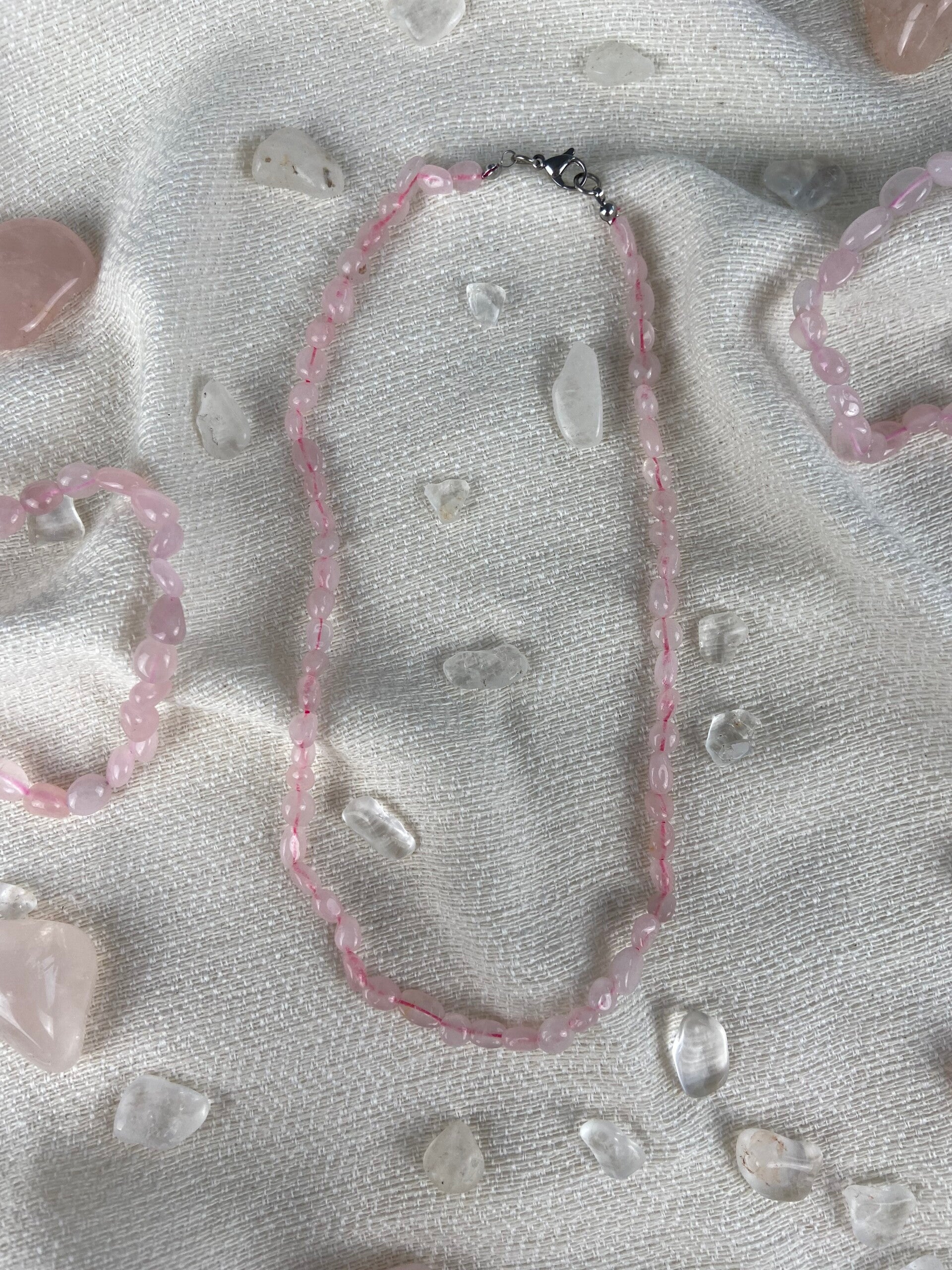 Rosenquarz Nuggetkette